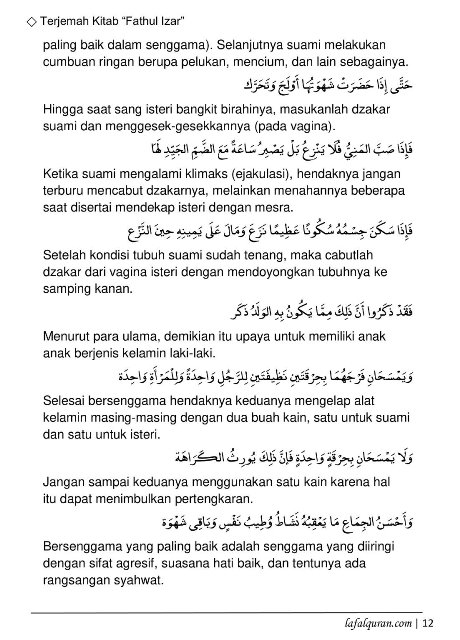Berikut ini merupakan Terjemahan Kitab Fathul Izar berupa Pdf atau gambar yang menjelaskan tentang Laki-Laki (suami) dan Wanita.